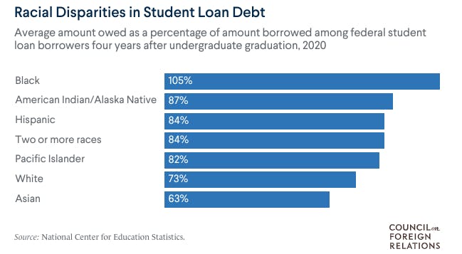 Yet, funding for public universities and college were pulled in the U.S. during the 2008 financial crisis. In fact, there is racial disparity in borrowing due to decades of racial discrimination.